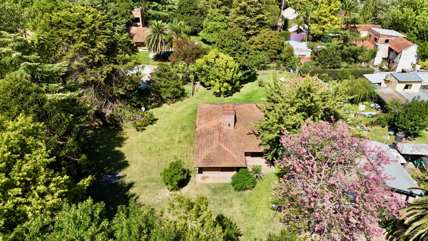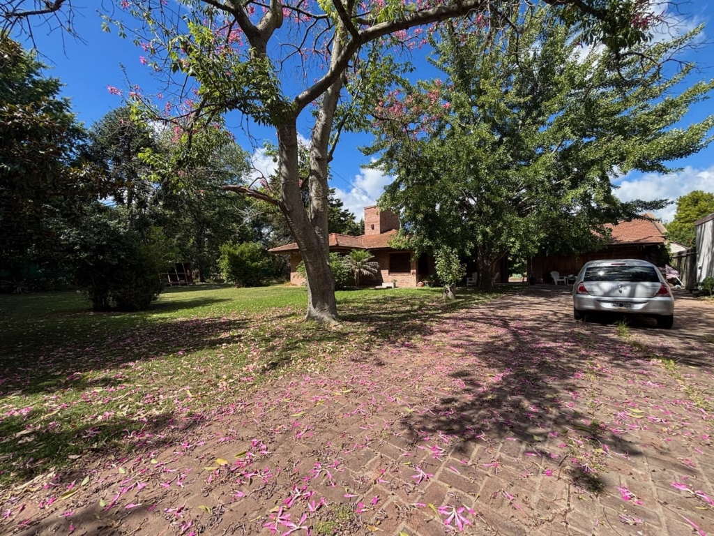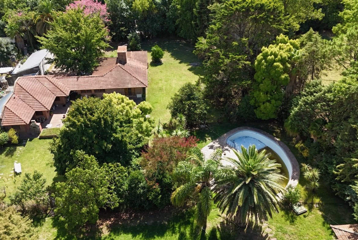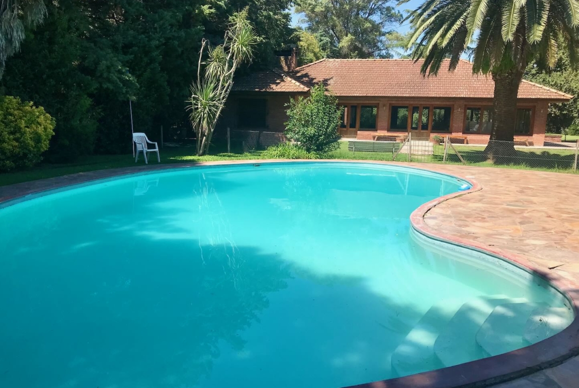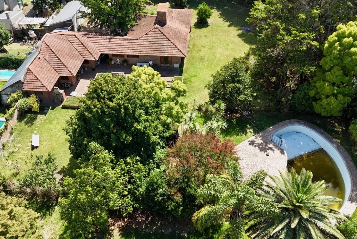 Lote de aprox. 3.000m2 con frente a calle 27. Amplia casa de aprox. 200m2 cubiertos. 3 dormitorios grandes con placard y piso de madera. 1 baño completo. Gran cocina. Living comedor con vista al jardín. Aberturas de madera con persiana tipo barrio. Detalles de categoría para la época de construcción, de fines de los 90. Construcción complementaria con garaje doble cubierto y amplio lavadero. Espacio de garaje exterior para varios autos. Pileta con forma de riñón.
