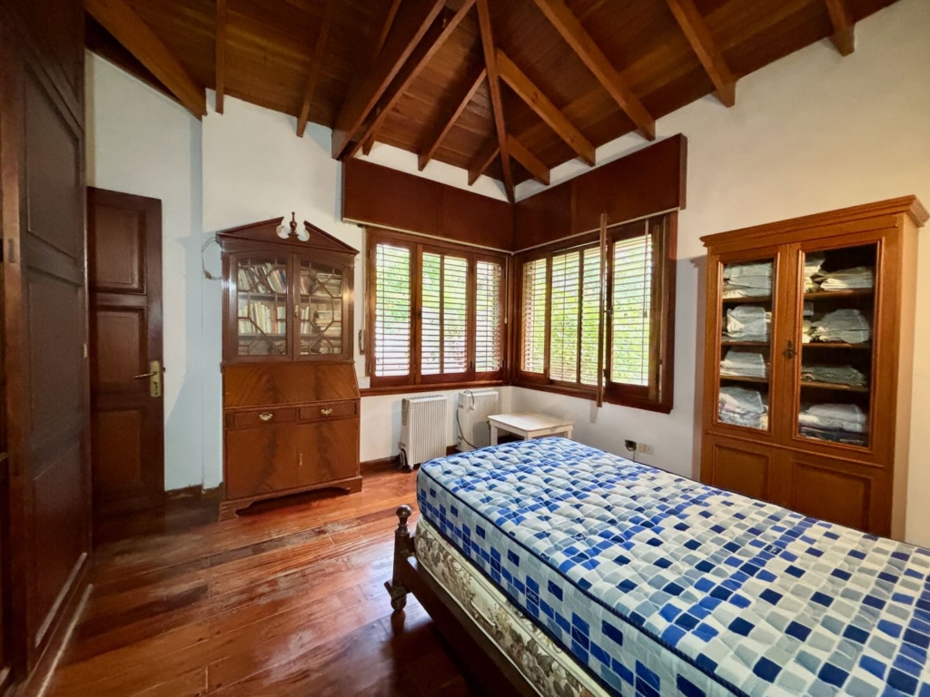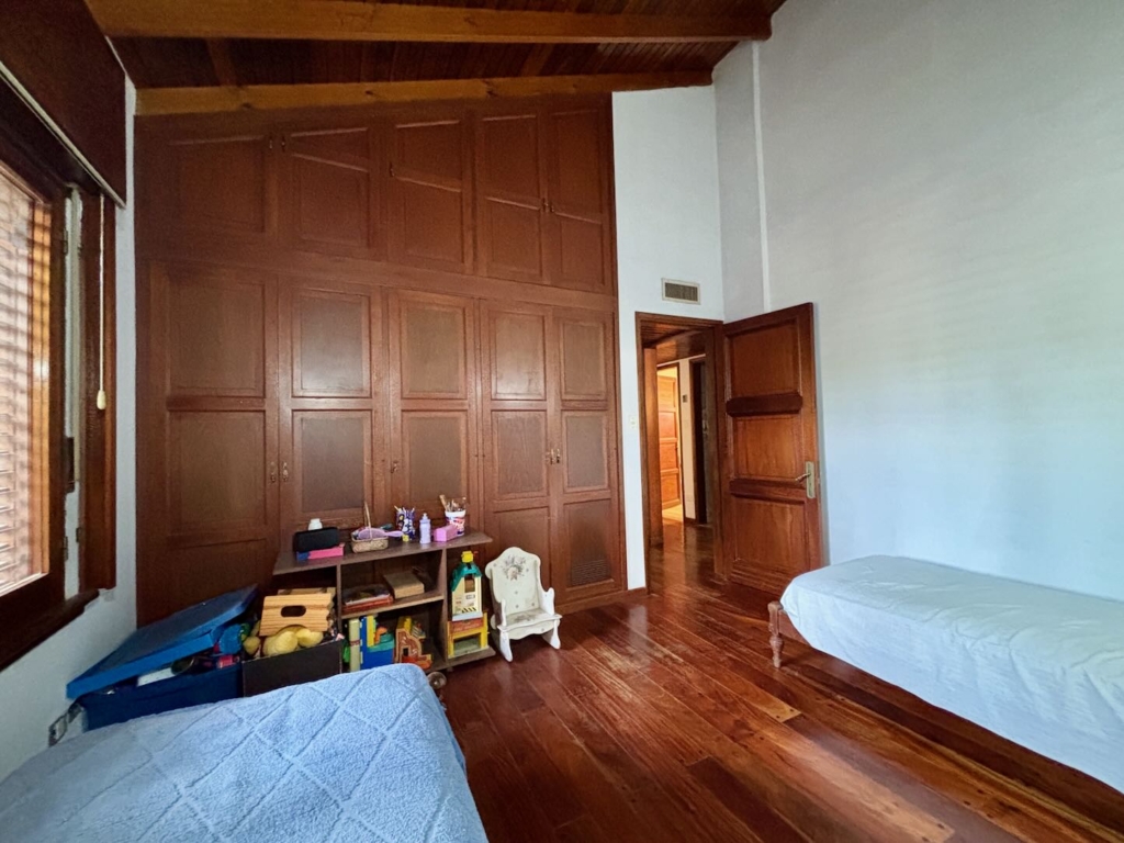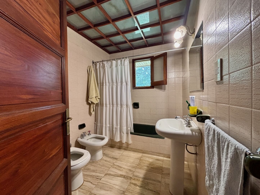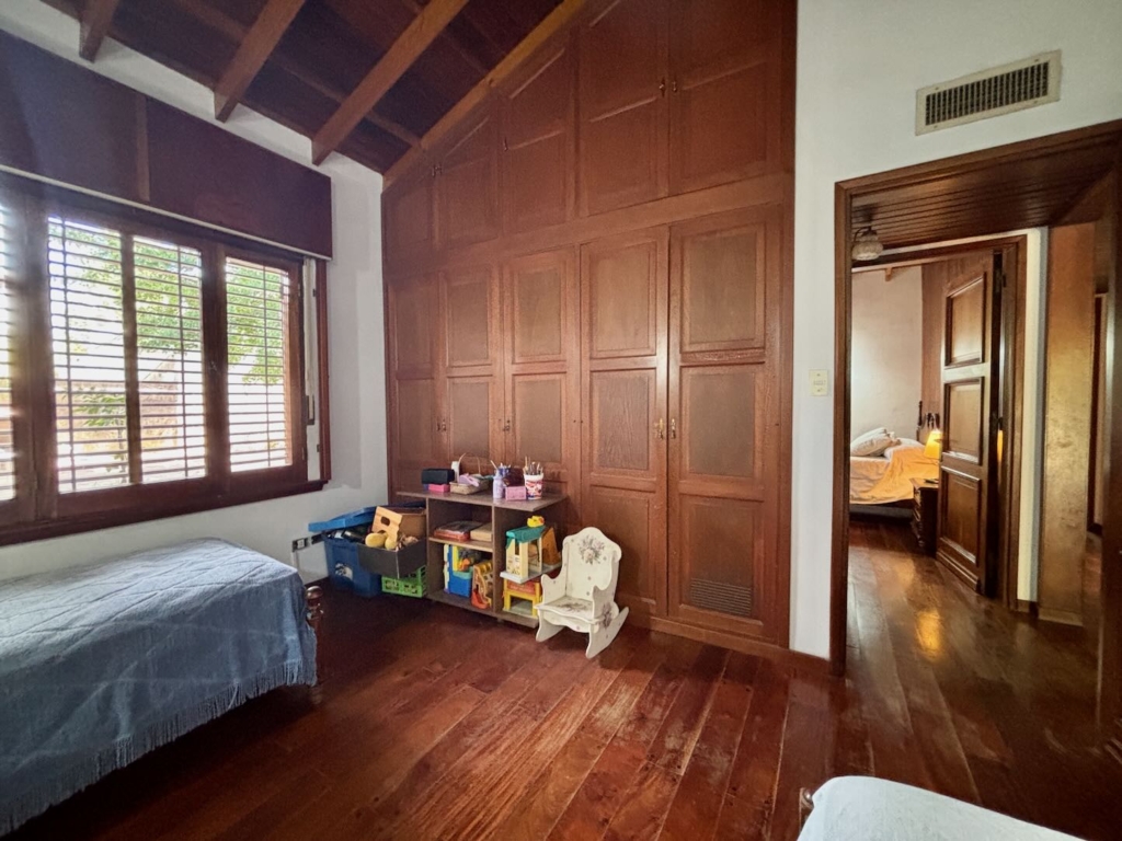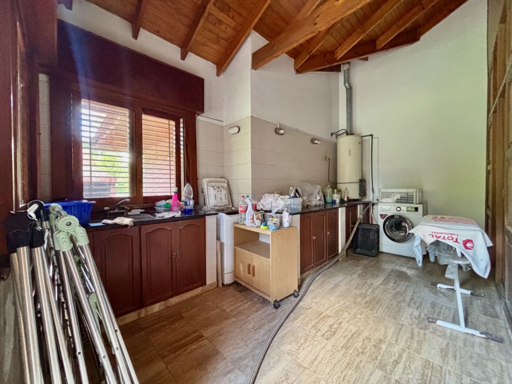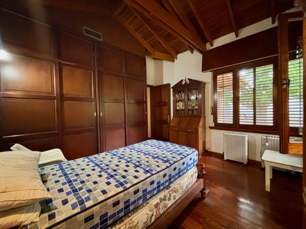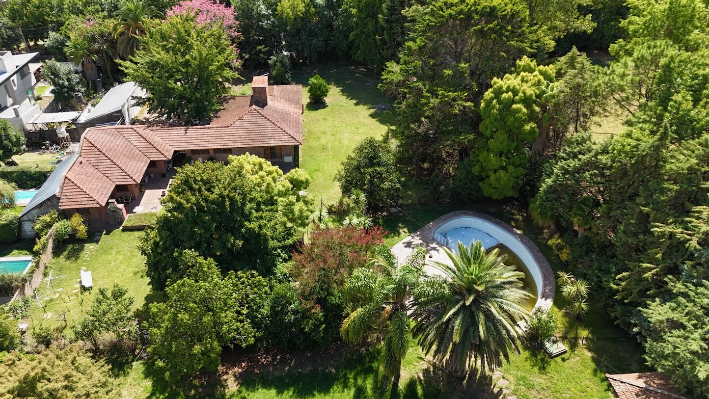 Lote de aprox. 3.000m2 con frente a calle 27. Amplia casa de aprox. 200m2 cubiertos. 3 dormitorios grandes con placard y piso de madera. 1 baño completo. Gran cocina. Living comedor con vista al jardín. Aberturas de madera con persiana tipo barrio. Detalles de categoría para la época de construcción, de fines de los 90. Construcción complementaria con garaje doble cubierto y amplio lavadero. Espacio de garaje exterior para varios autos. Pileta con forma de riñón.