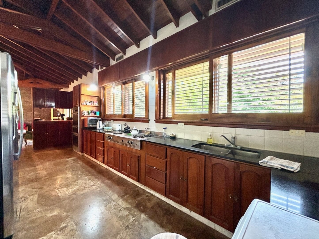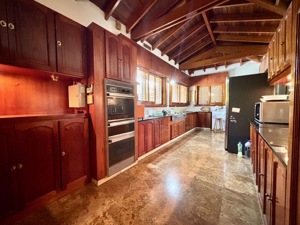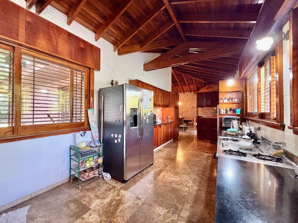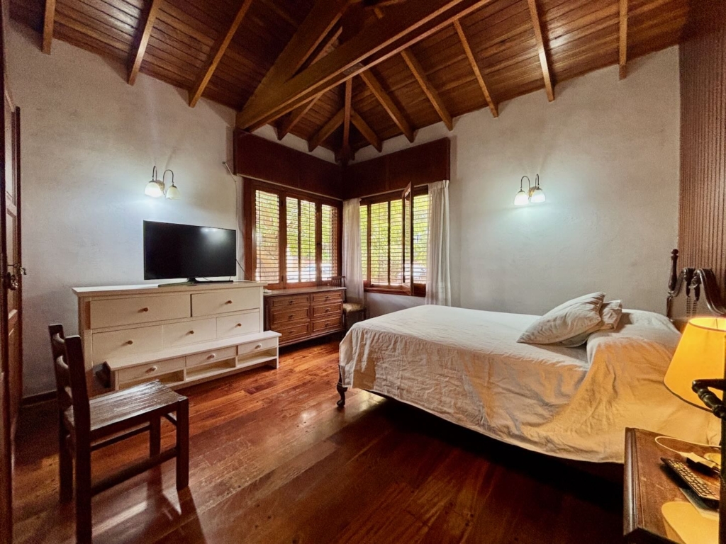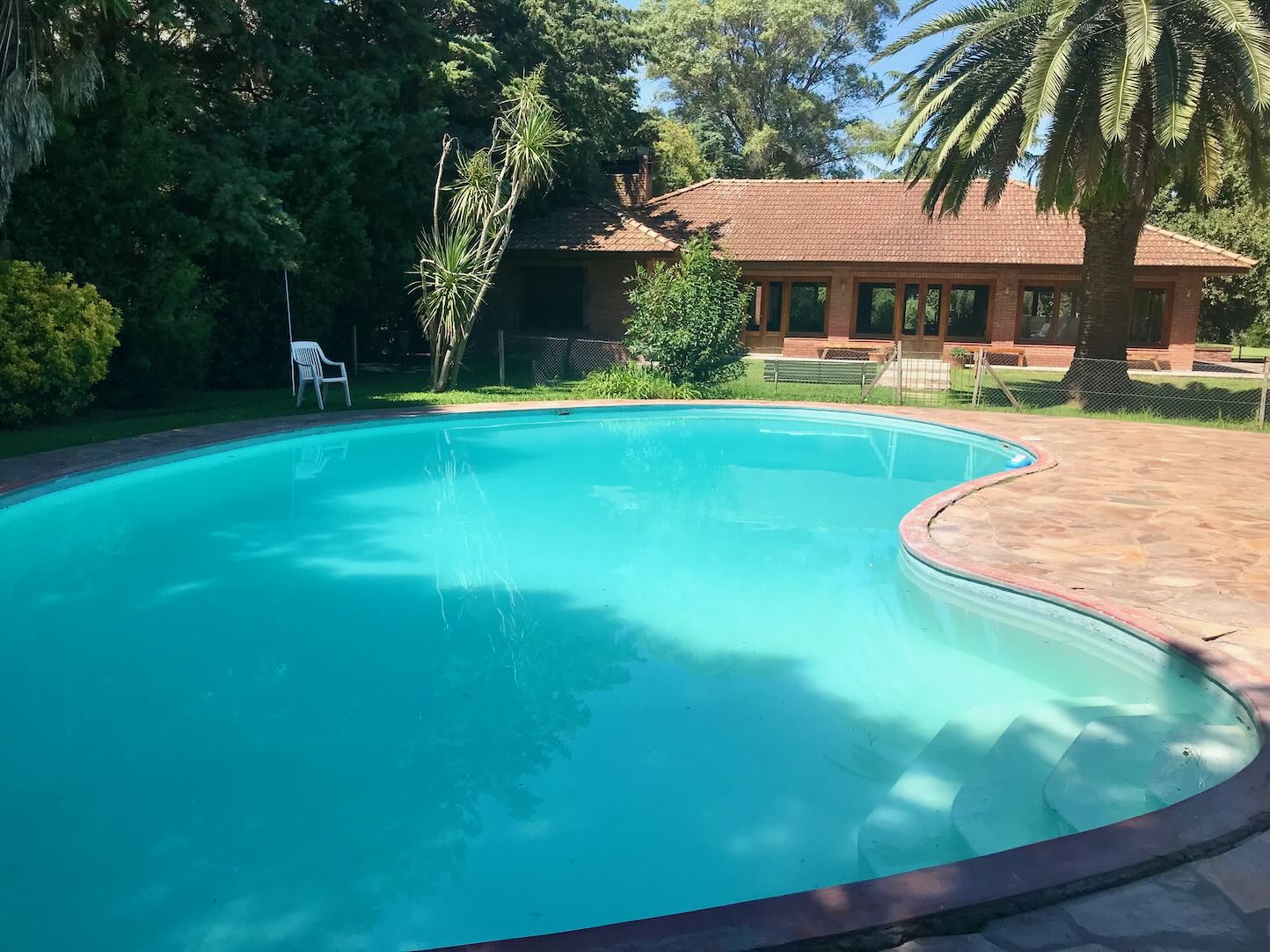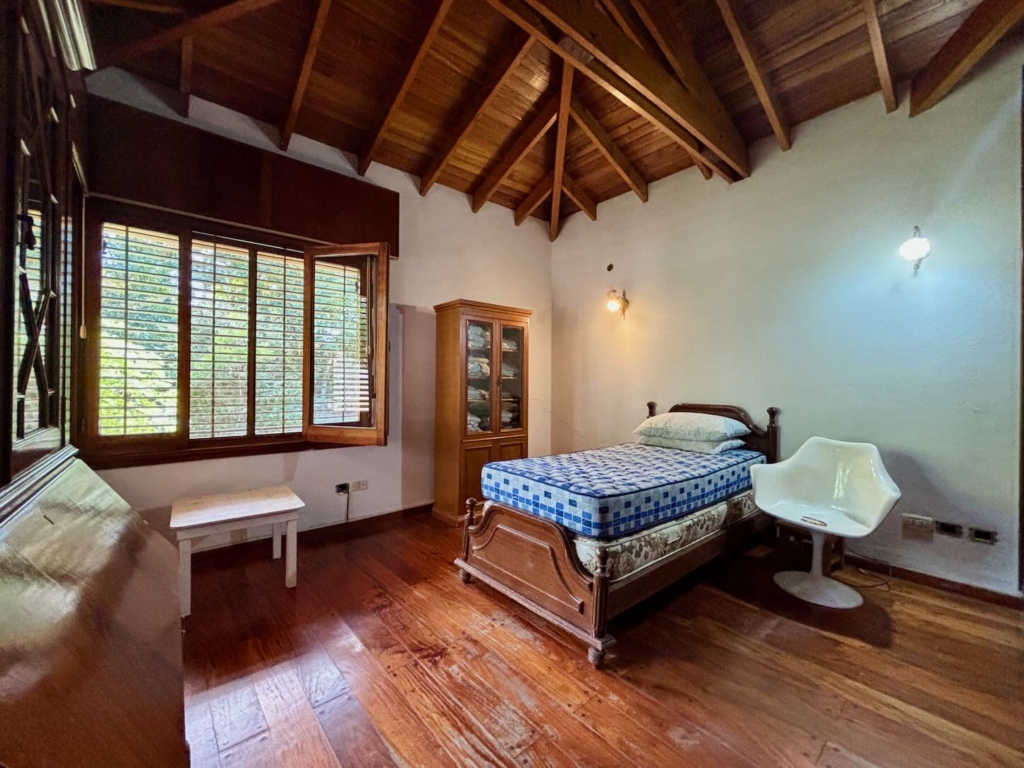 Lote de aprox. 3.000m2 con frente a calle 27. Amplia casa de aprox. 200m2 cubiertos. 3 dormitorios grandes con placard y piso de madera. 1 baño completo. Gran cocina. Living comedor con vista al jardín. Aberturas de madera con persiana tipo barrio. Detalles de categoría para la época de construcción, de fines de los 90. Construcción complementaria con garaje doble cubierto y amplio lavadero. Espacio de garaje exterior para varios autos. Pileta con forma de riñón.