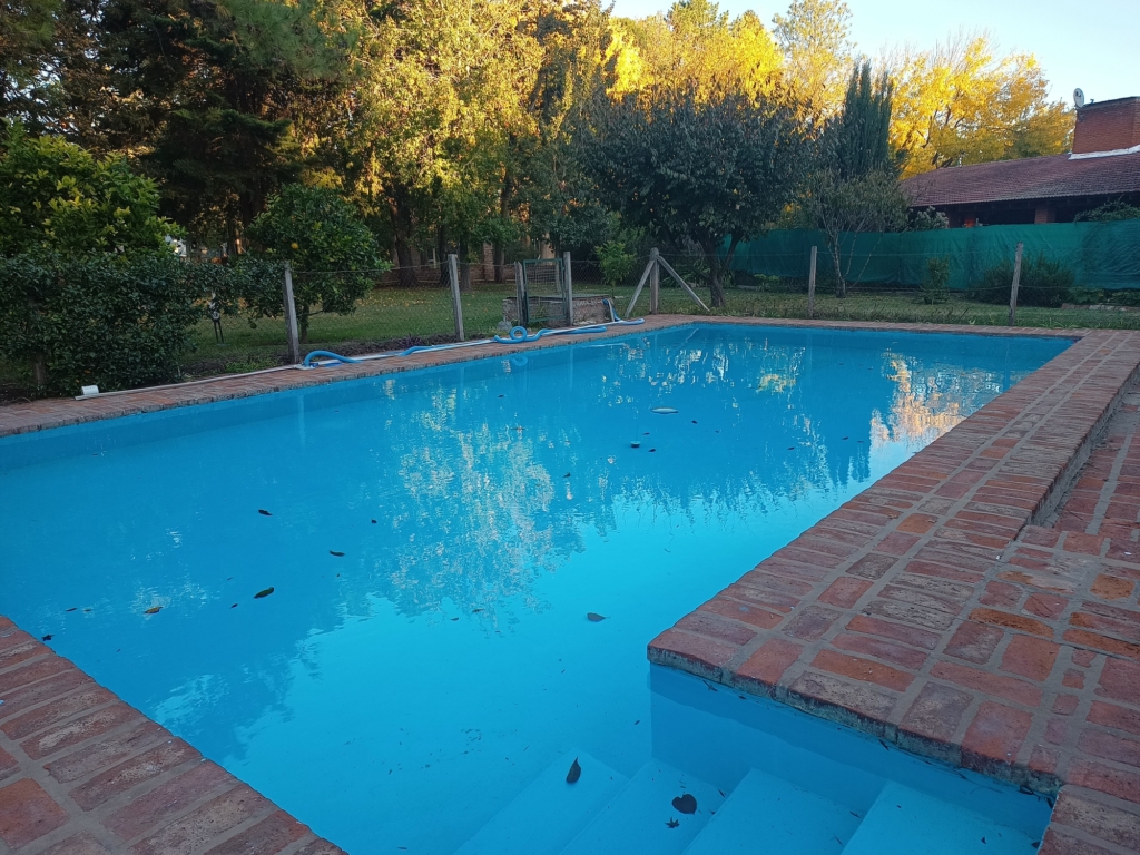 El inmueble se asienta sobre un lote arbolado de 1490 m2, posee una casa principal de aproximadamente 100 m2, que consta de cocina comedor, dos dormitorios, dos baños, amplia galería cubierta, galpón, vestuario y pileta de 50 m2 (5 x 10 mts). Además cuenta con una segunda construcción de aproximadamente 30 m2. Toma permuta parcial (50%)