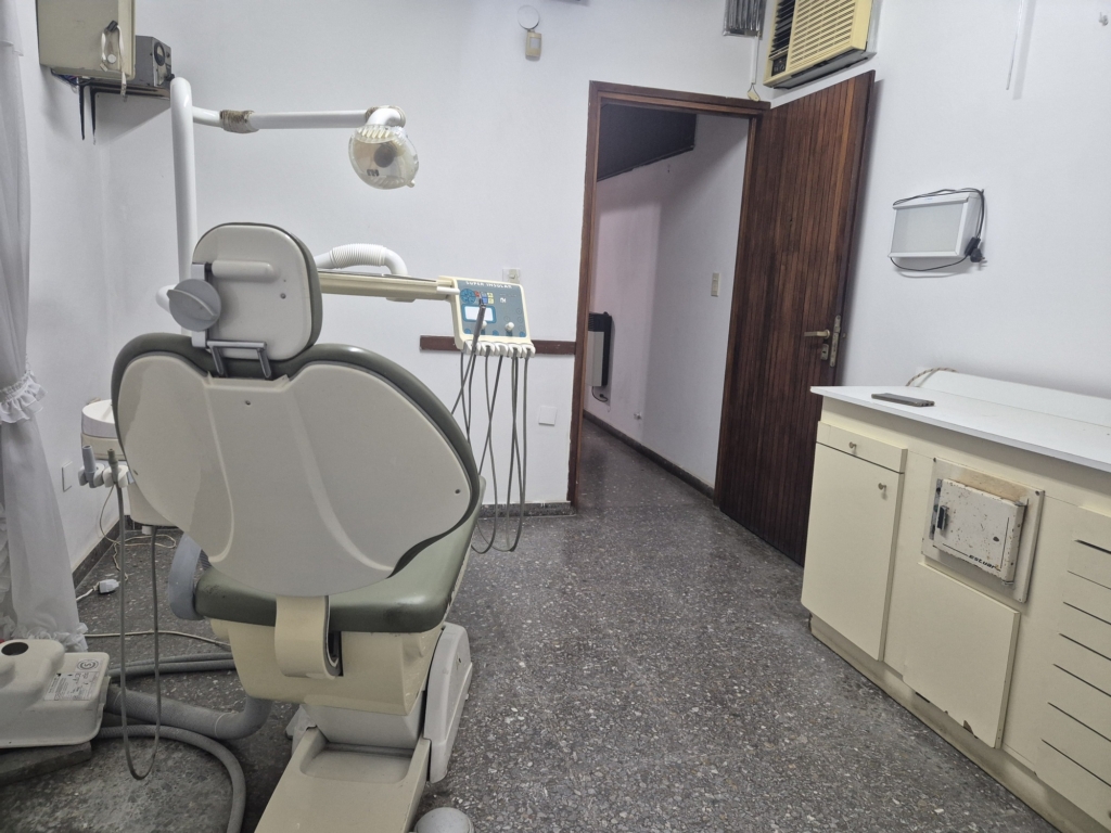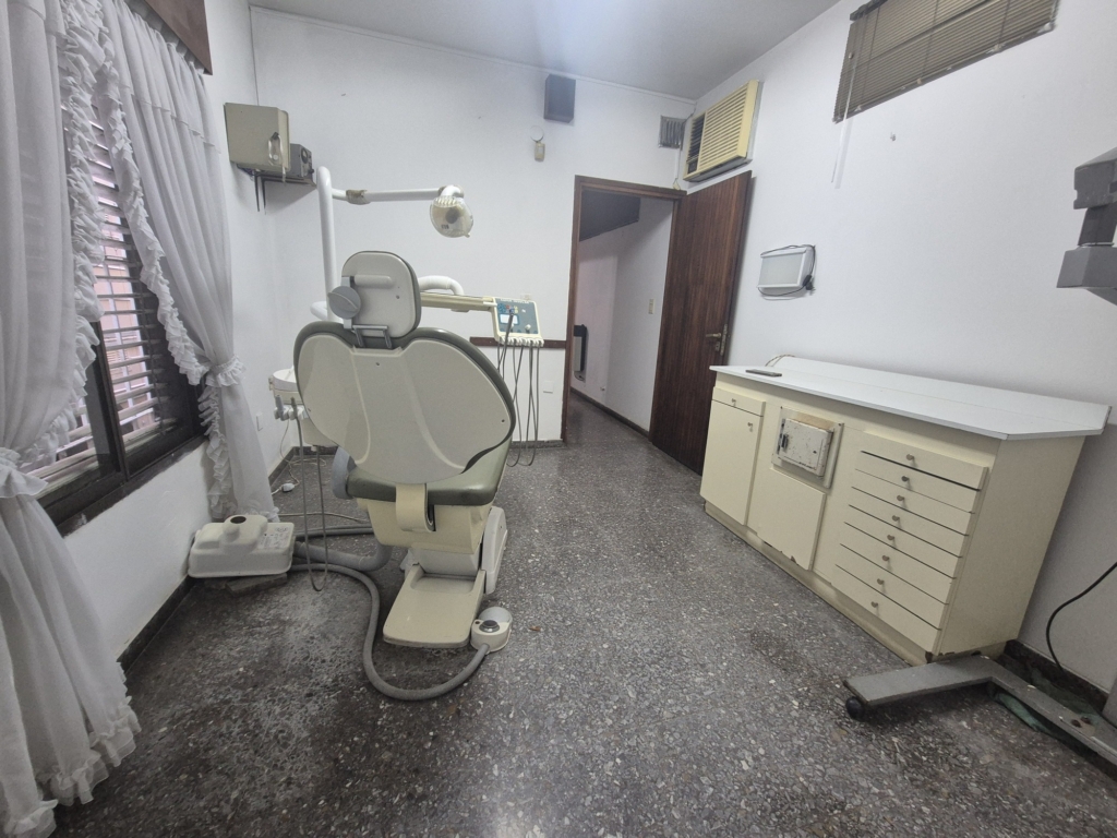 Consultorio/oficina en alquiler en City Bell. Entrada independiente por calle 467 hacia una sala de espera de 9.50 m2, luego un pasillo de circulación que se ensancha hacia el frente permitiendo colocar allí un escritorio, ideal para recepcionista (9 m2), lugo vamos hacia el consultorio/oficina principal de 10.60 m2 y por último a la cocina de 4.8 m2. Todas medidas aproximadas. Cuenta con elementos de oficina y odontología que en caso de quqrer usarlos se le adiciona al alquiler la suma de $ 60.000 por mes. Los mismos son los que se ven en las fotos. Equipo de rayos, sillón odontológico, compresor, escritorio, sillones, etc