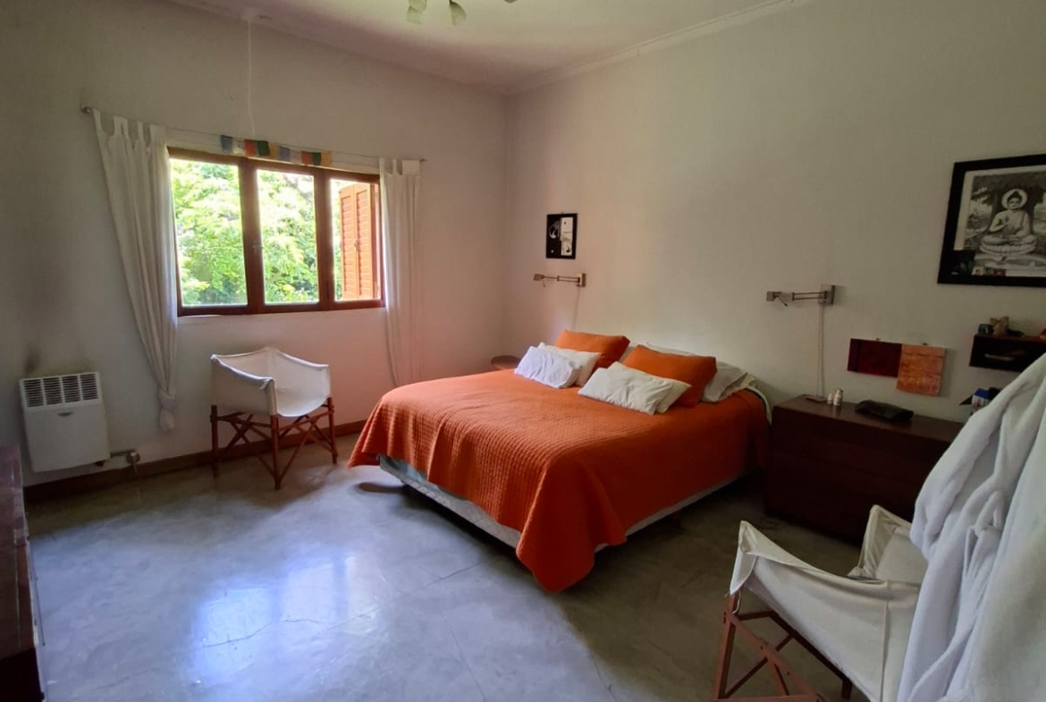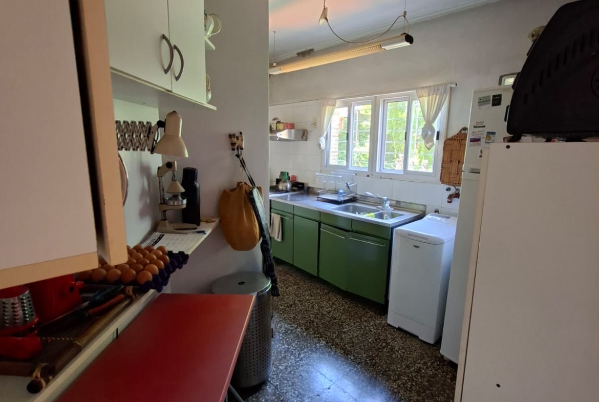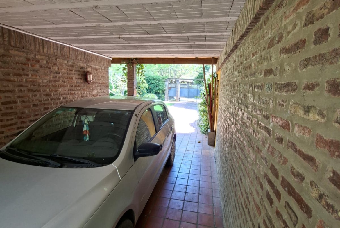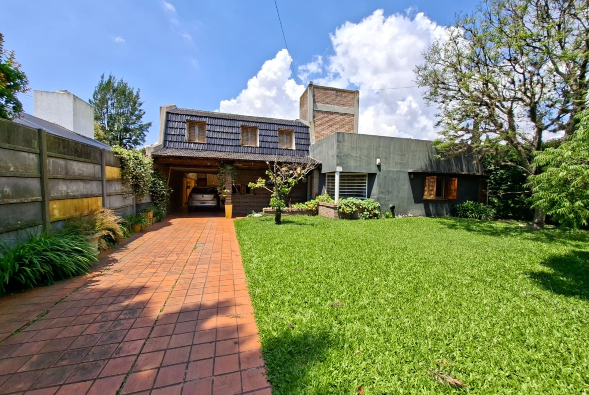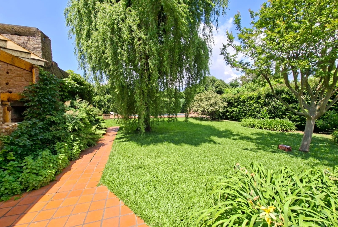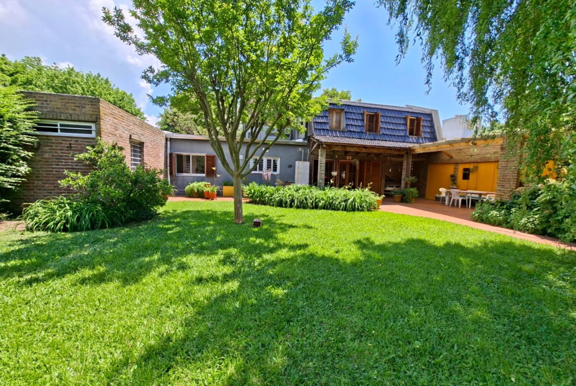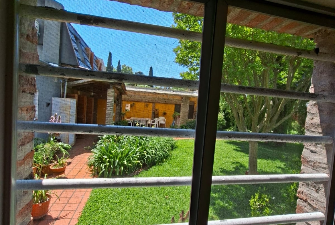 Fondo verde ideal para disfrutar el verano: jardín parquizado, pileta, quincho con parrilla y galería.