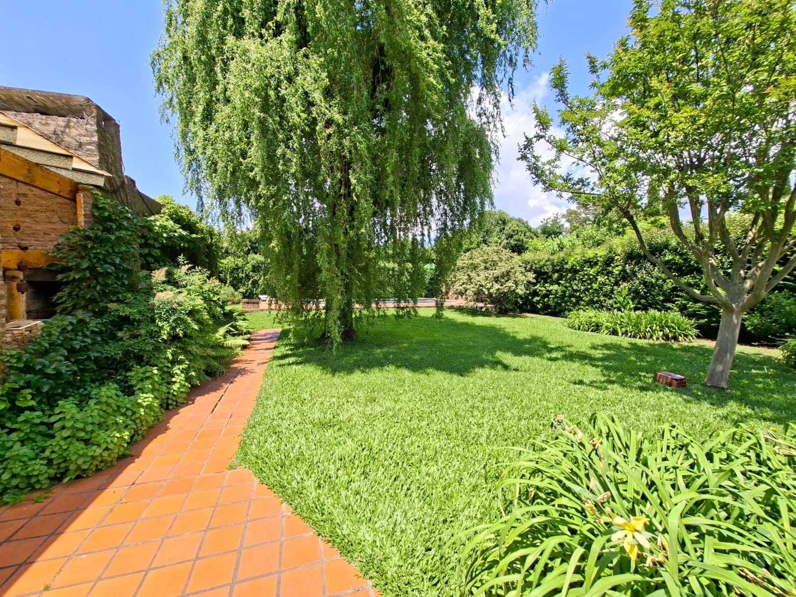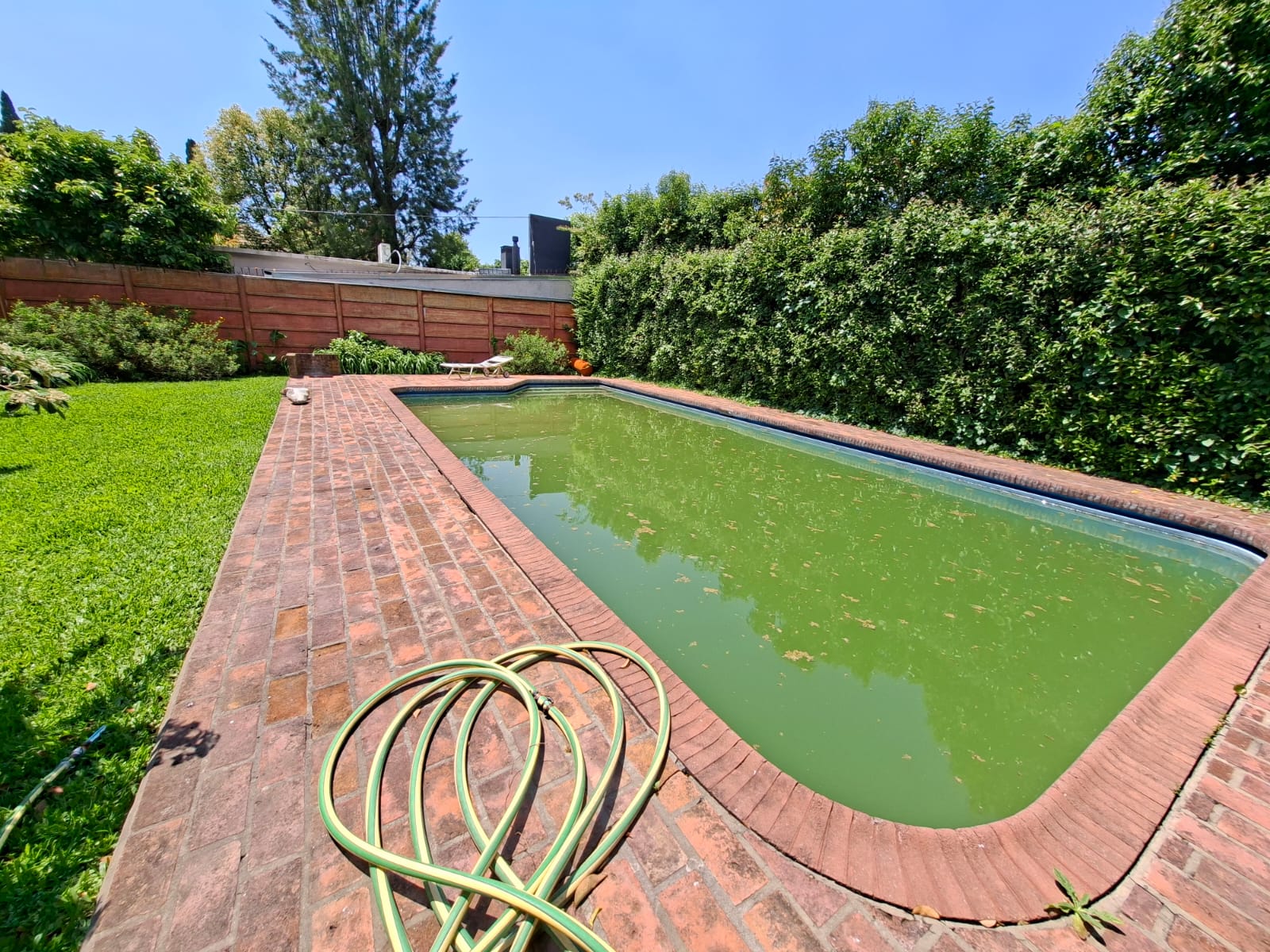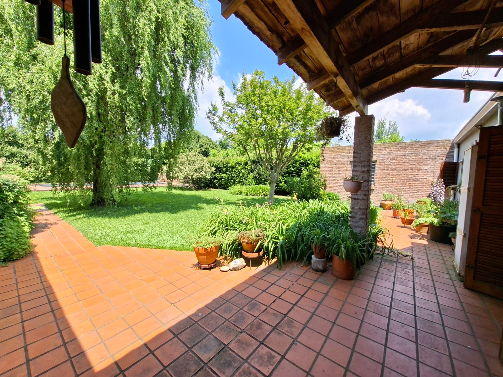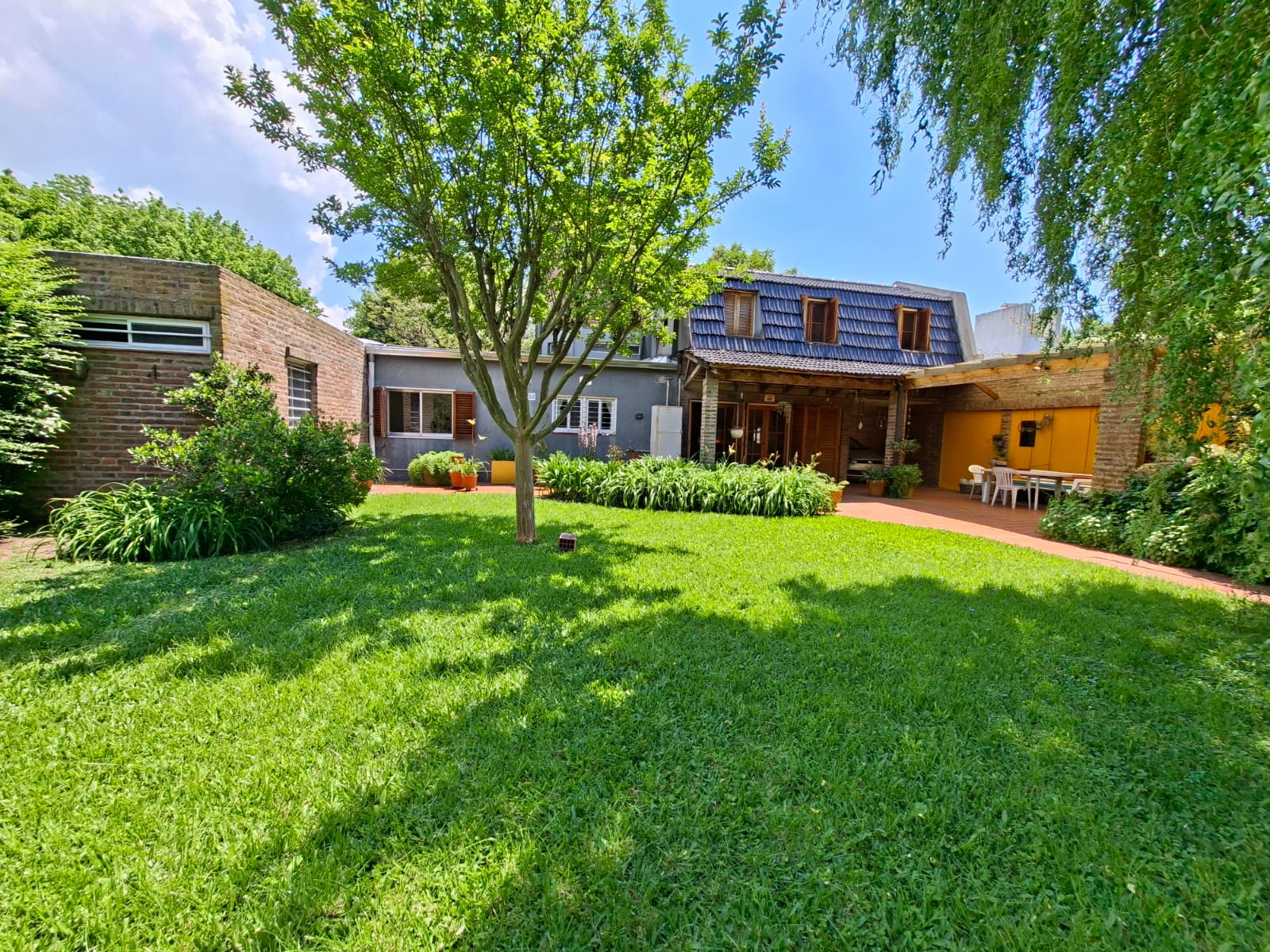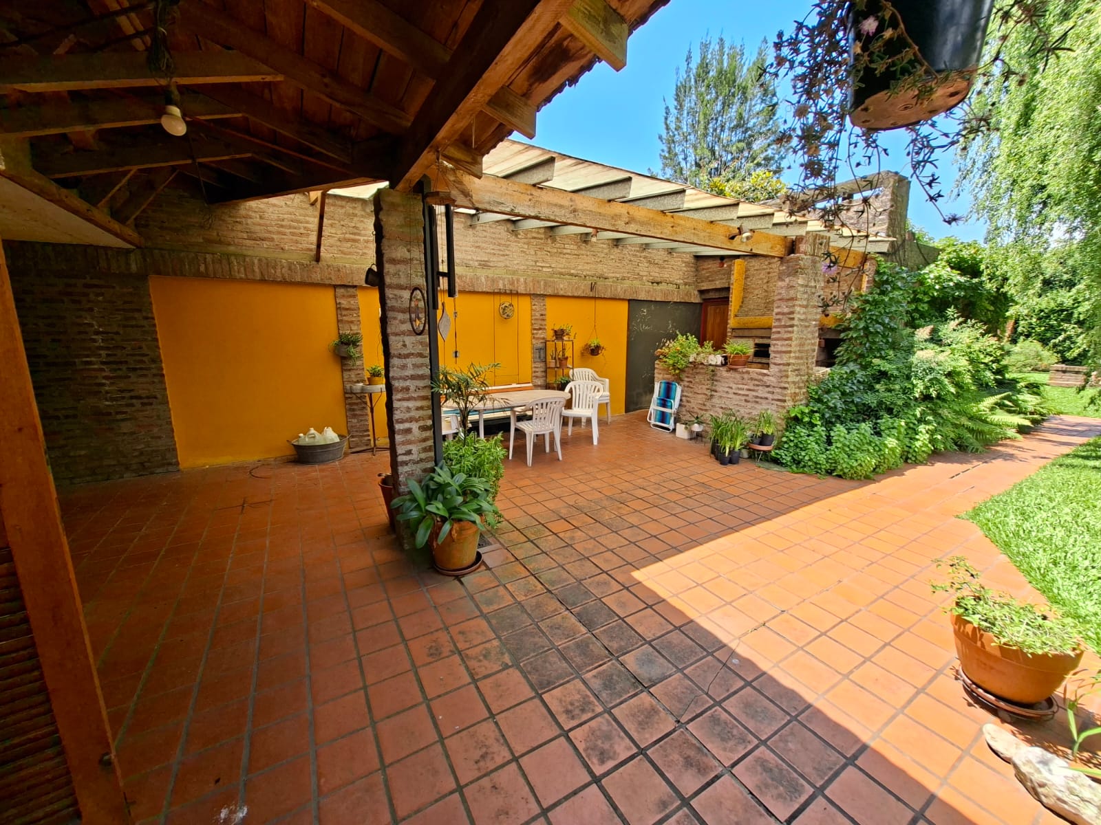 Fondo verde ideal para disfrutar el verano: jardín parquizado, pileta, quincho con parrilla y galería.