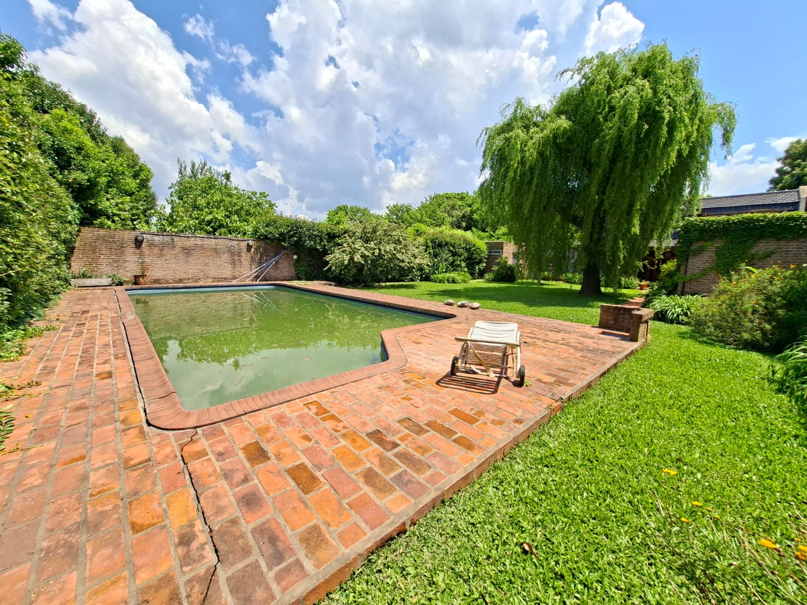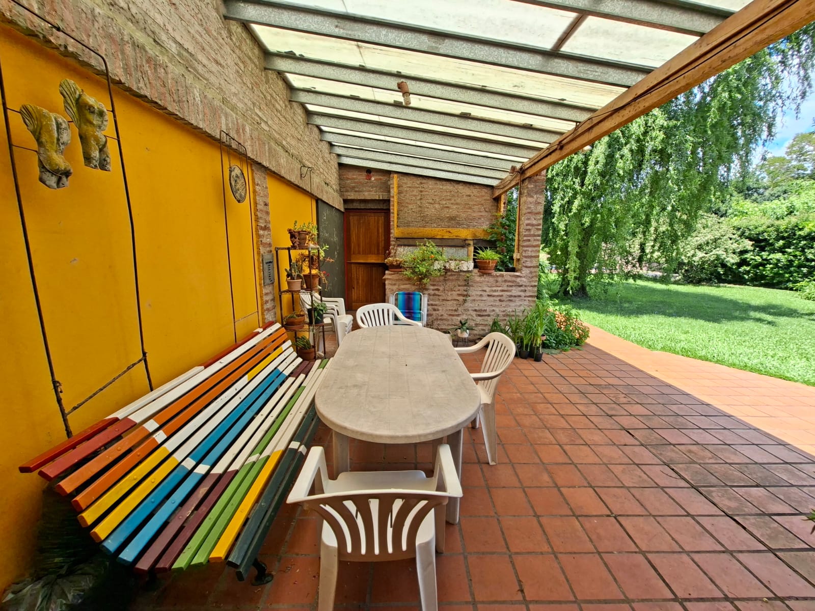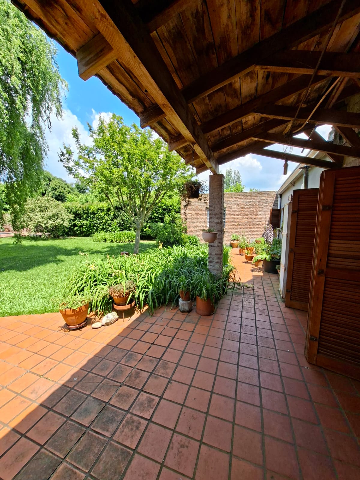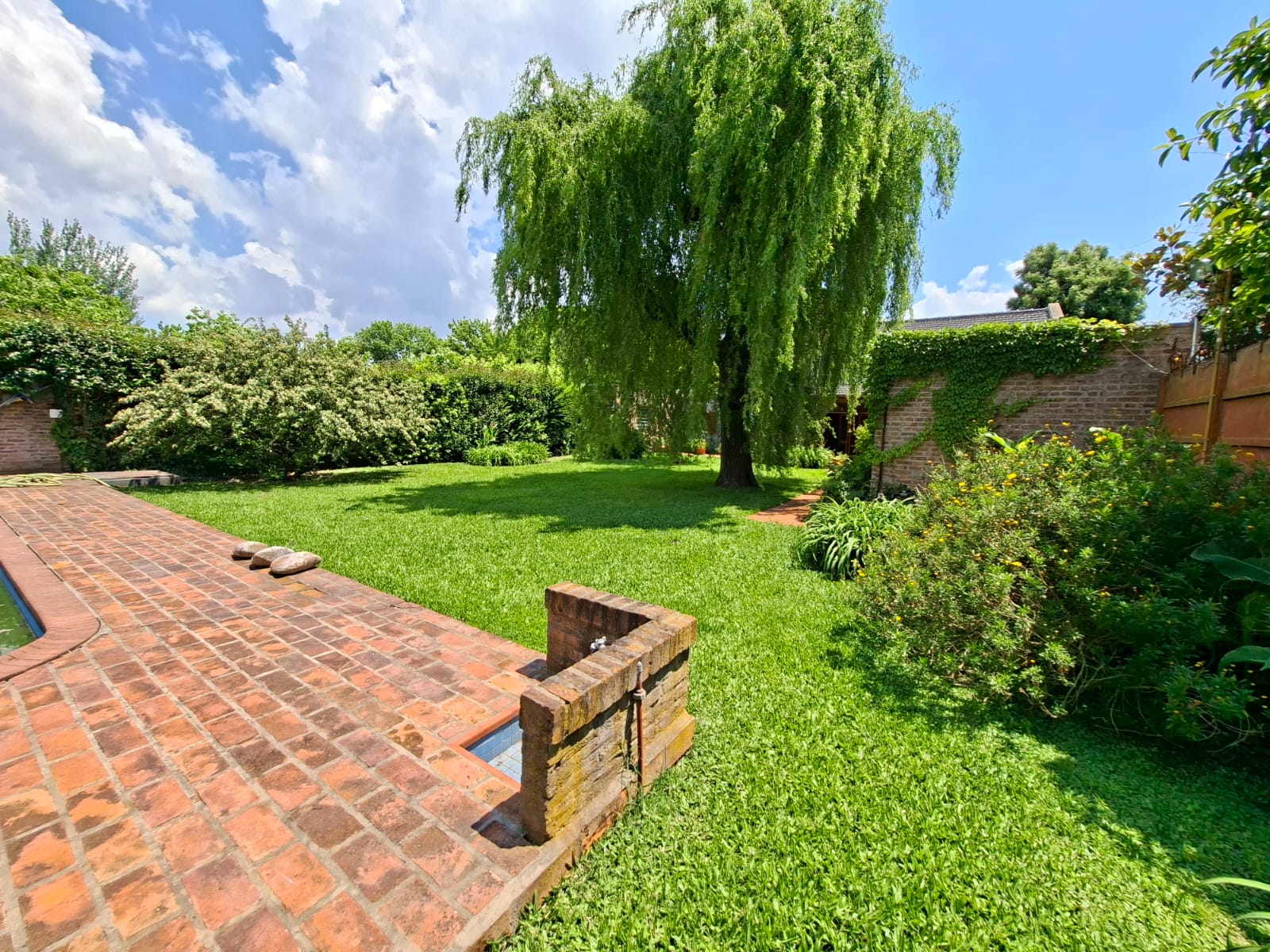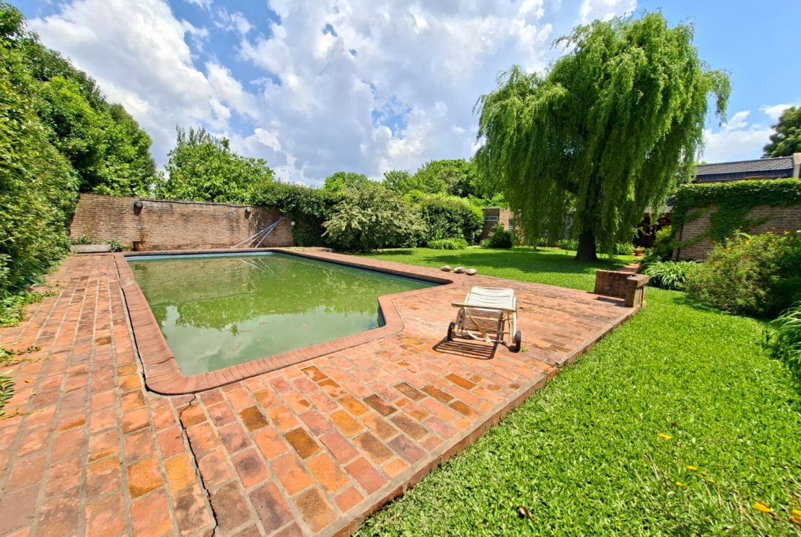 Fondo verde ideal para disfrutar el verano: jardín parquizado, pileta, quincho con parrilla y galería.