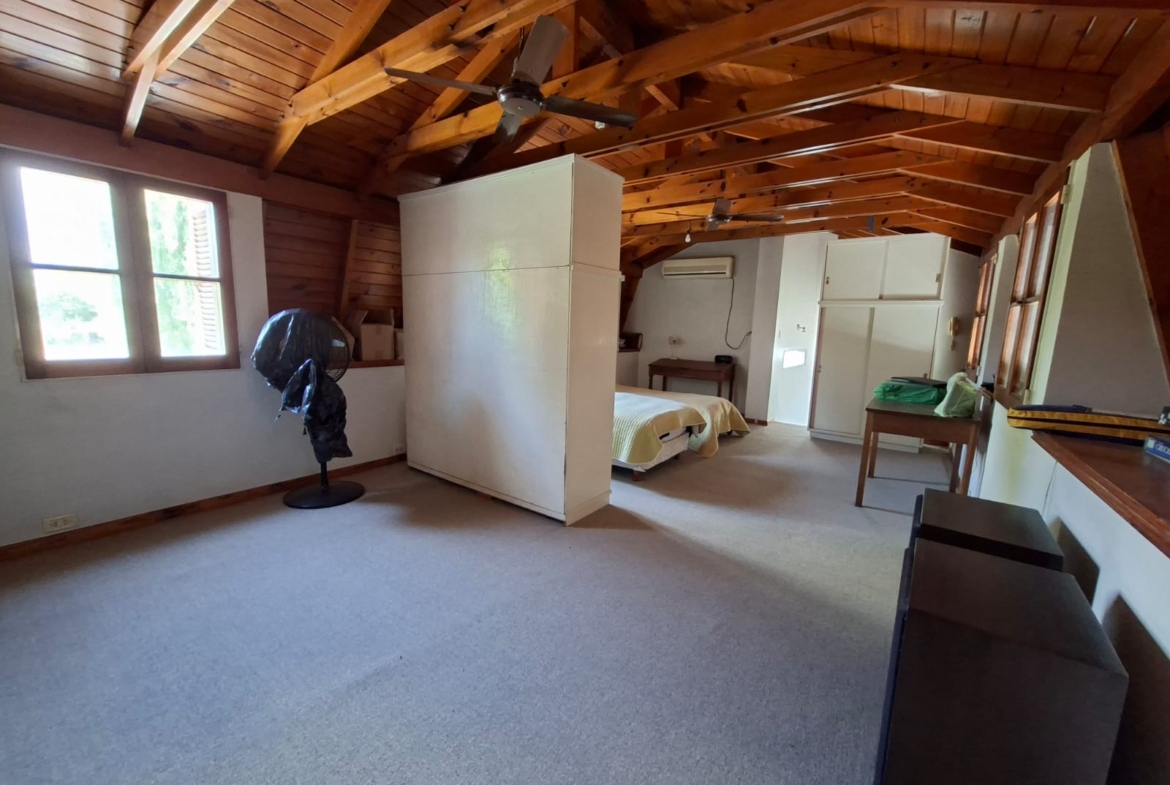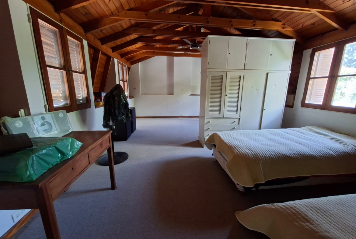 En planta alta, un gran espacio adicional, ideal para habitaciones, salón de juegos, oficina, o espacio de trabajo.